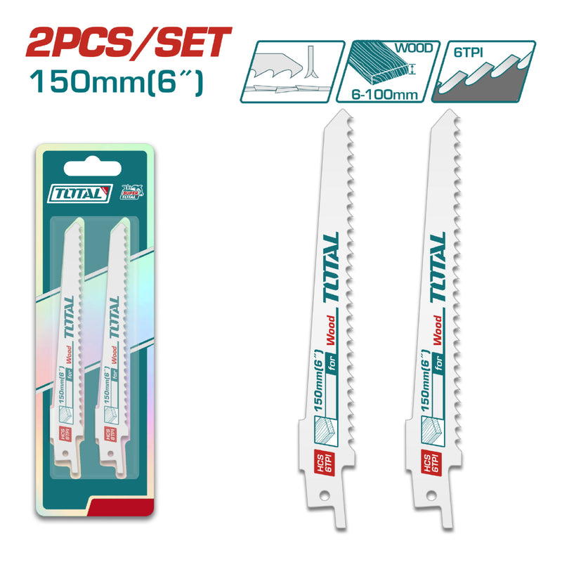 2pcs Hojas sierra sable reciproca para madera 150mmX19mmX1.25mm 6TPI - HCS - tallo de 1/2''. Corte rapido