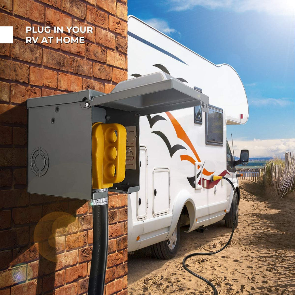 Caja de tomacorriente para RV de 50 amperios, 125/250V, con tapa para cargadores de autos eléctricos