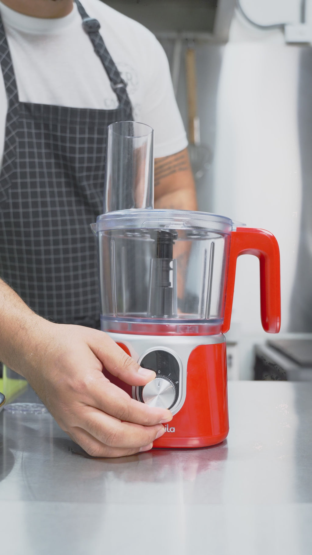 Procesador de alimentos inalámbrico rojo 250W 1.25L Pica, rebana y corta. Incluye Batería y Cargador.