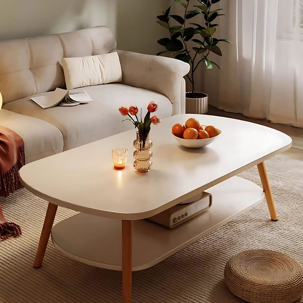 Mesa de Centro Moderna con Repisa Inferior 100x50x42cm. Esquinas Redondeadas. Color blanco.
