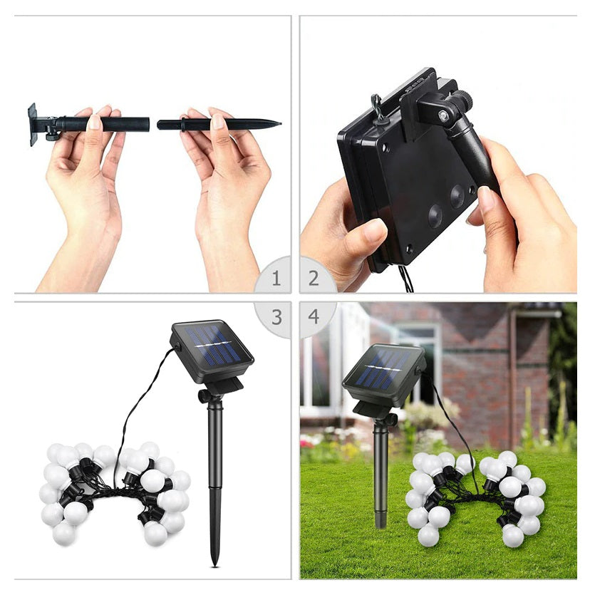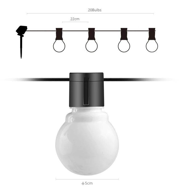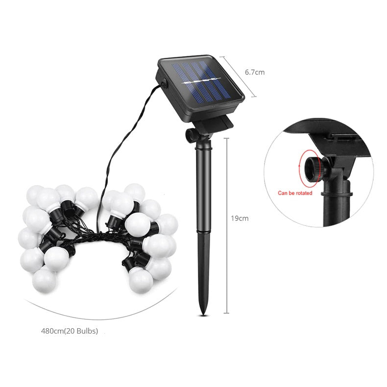 Guirnalda de Luz decorativa, carga panel solar. 5 Mts 20 Bombillos. Luz Cálida.