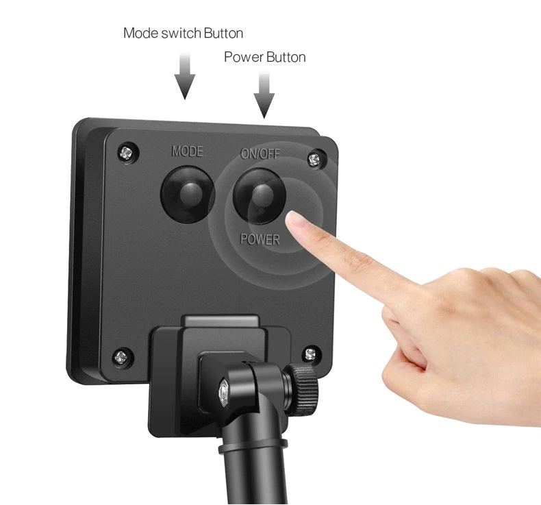 Con 2 interruptores, uno es el modo (conmutador de conversión de modo intermitente), otro es encendido/apagado (después del interruptor encendido, puede controlar y cargar la luz automáticamente).