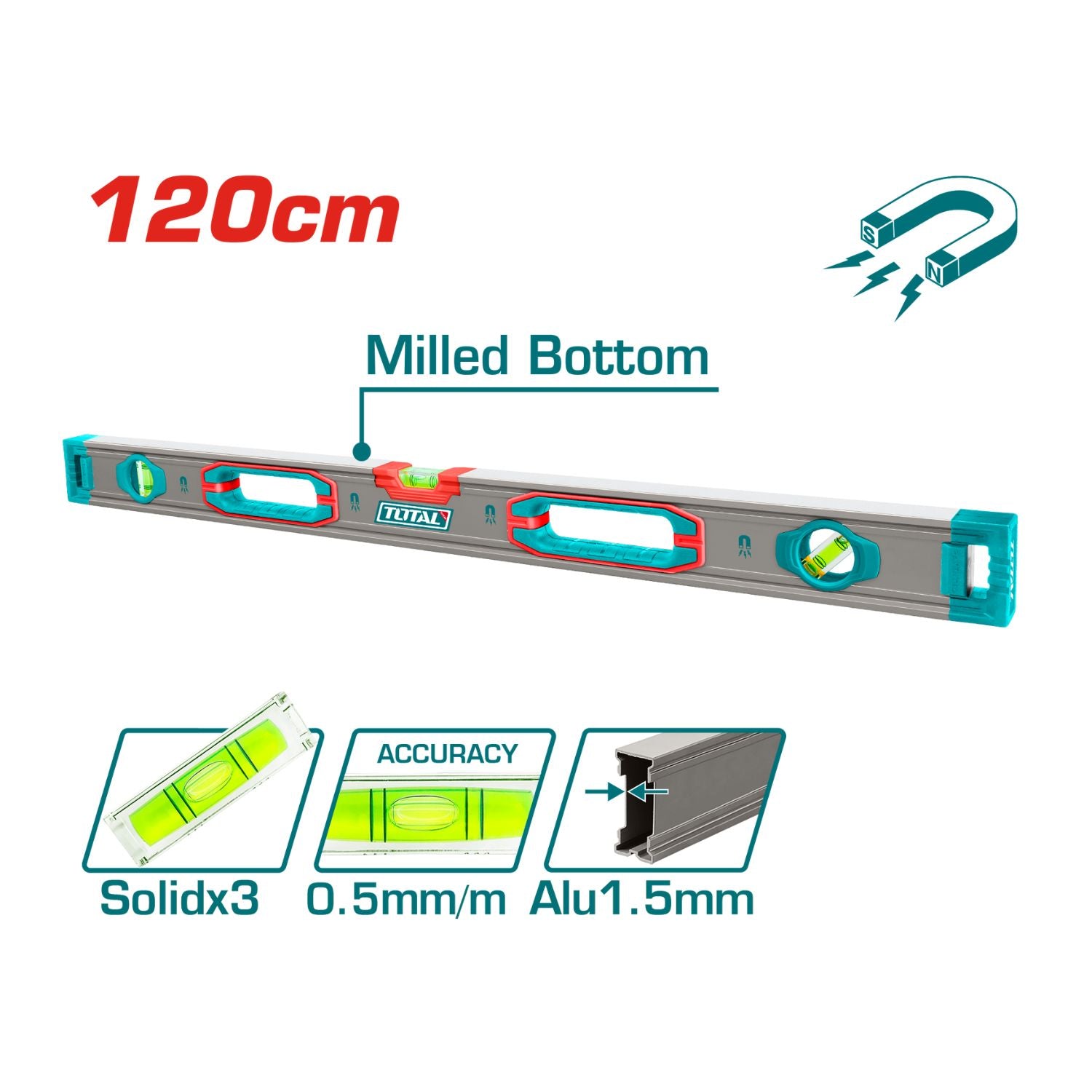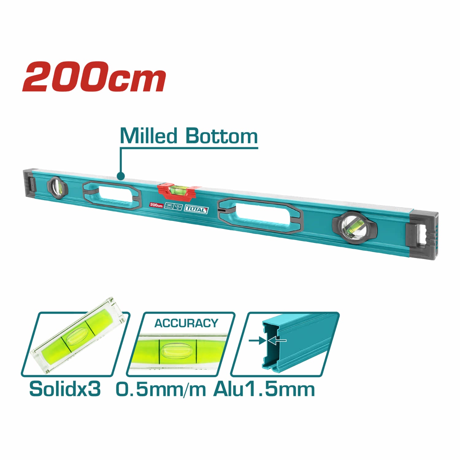 Nivel de Burbuja en forma de V para Objetos Cilindricos 80 cm. Espesor del Aluminio 1.5 mm.