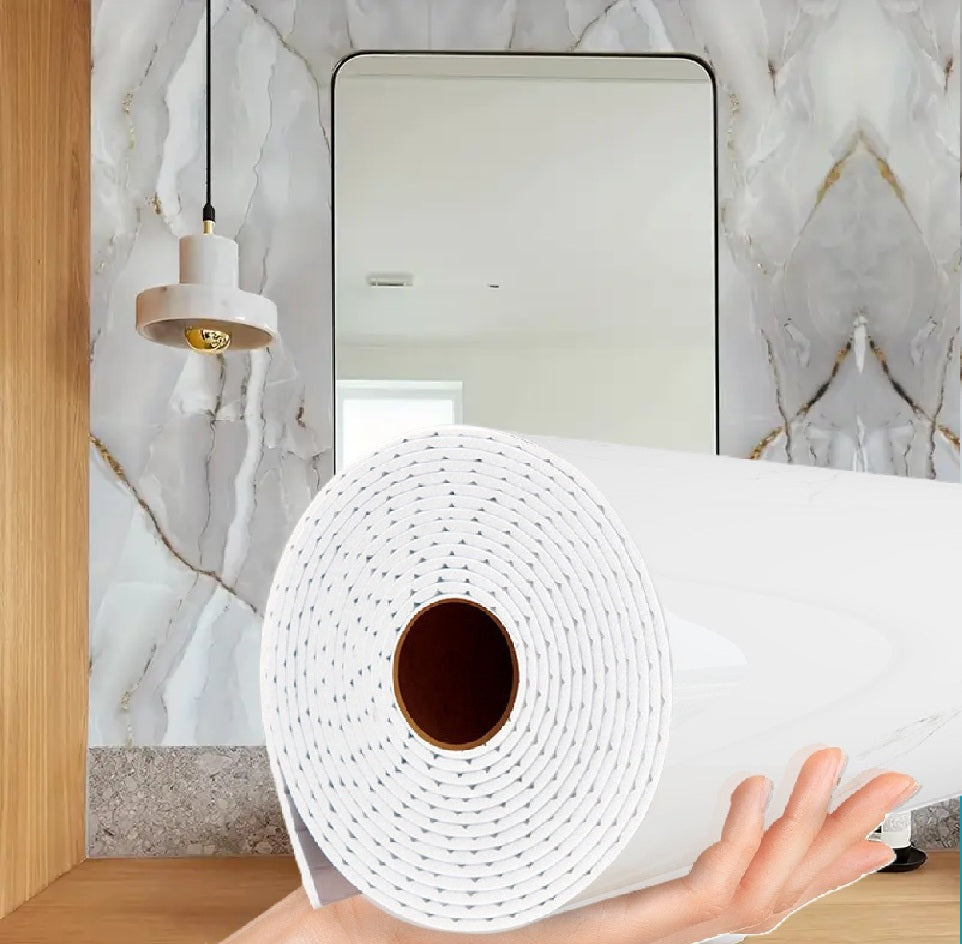 Rollo Lámina Decorativa Autoadhesiva PU. Panel 1.20×2.80m×2.4mm Acabado Liso Brillante, color Grey Gold Marble