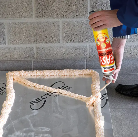 - La conductividad térmica 0,036 W/mK mejora el rendimiento de los paneles de aislamiento al rellenar huecos.