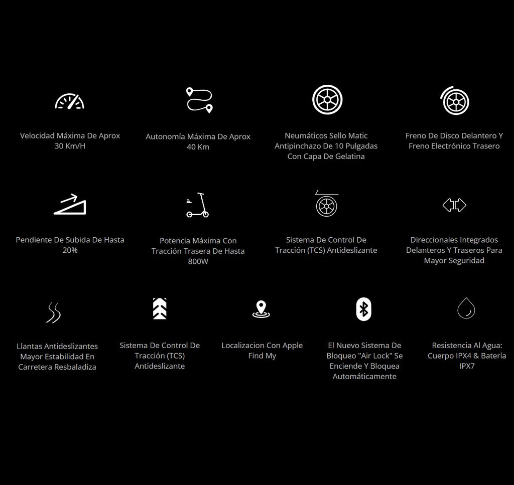 8. Frenos: Disco Delantero y Eléctrico regenerativo Trasero.