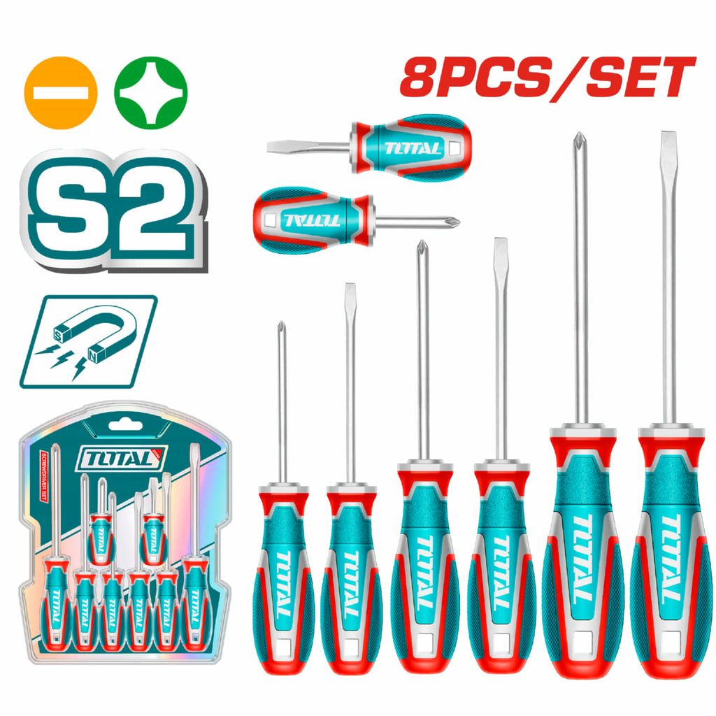 Destornilladores Punta Plana (SL) Y Punta Estrella (PH).CR-V. Magnético. Mango Redondo(Set De 8)