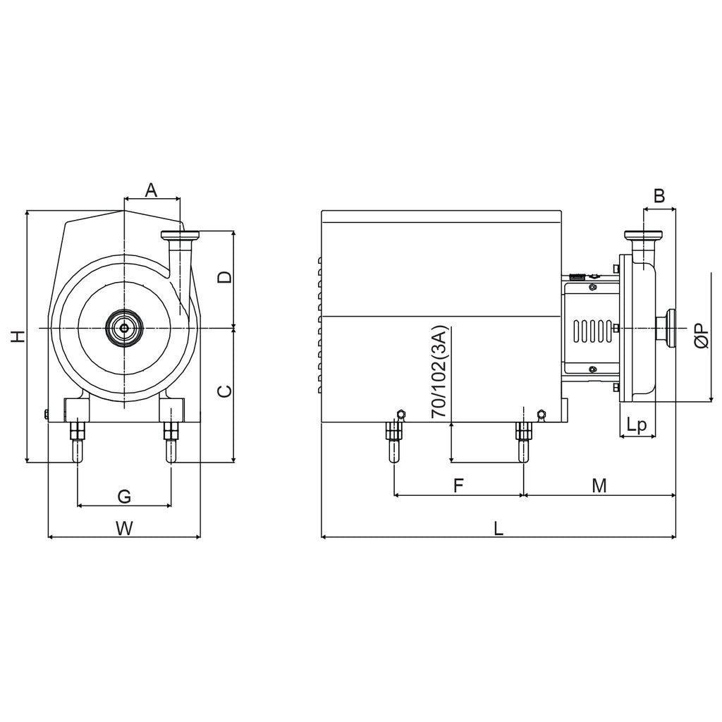 La bomba centrífuga es fabricada en acero inoxidable y con motor recubierto. Su diseño sanitario y económico hace que sea perfecto para las industrias lácteas, bebidas, elaboración de alimentos, farmacéutica y química fina. El rotor situado dentro del cuerpo, la gira conjuntamente con el eje de la bomba. Con esta disposición, los álabes del rodete transmiten energía al fluido en forma de energía cinética y energía de presión. Esta bomba no es reversible por simple inversión del sentido de giro. El sentido de giro es hacia la derecha cuando la bomba se ve desde el lado trasero del motor.