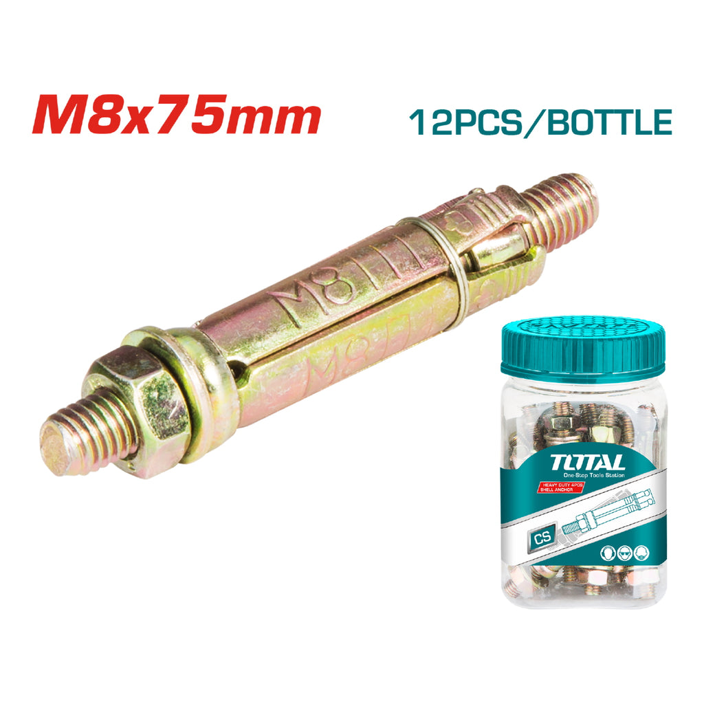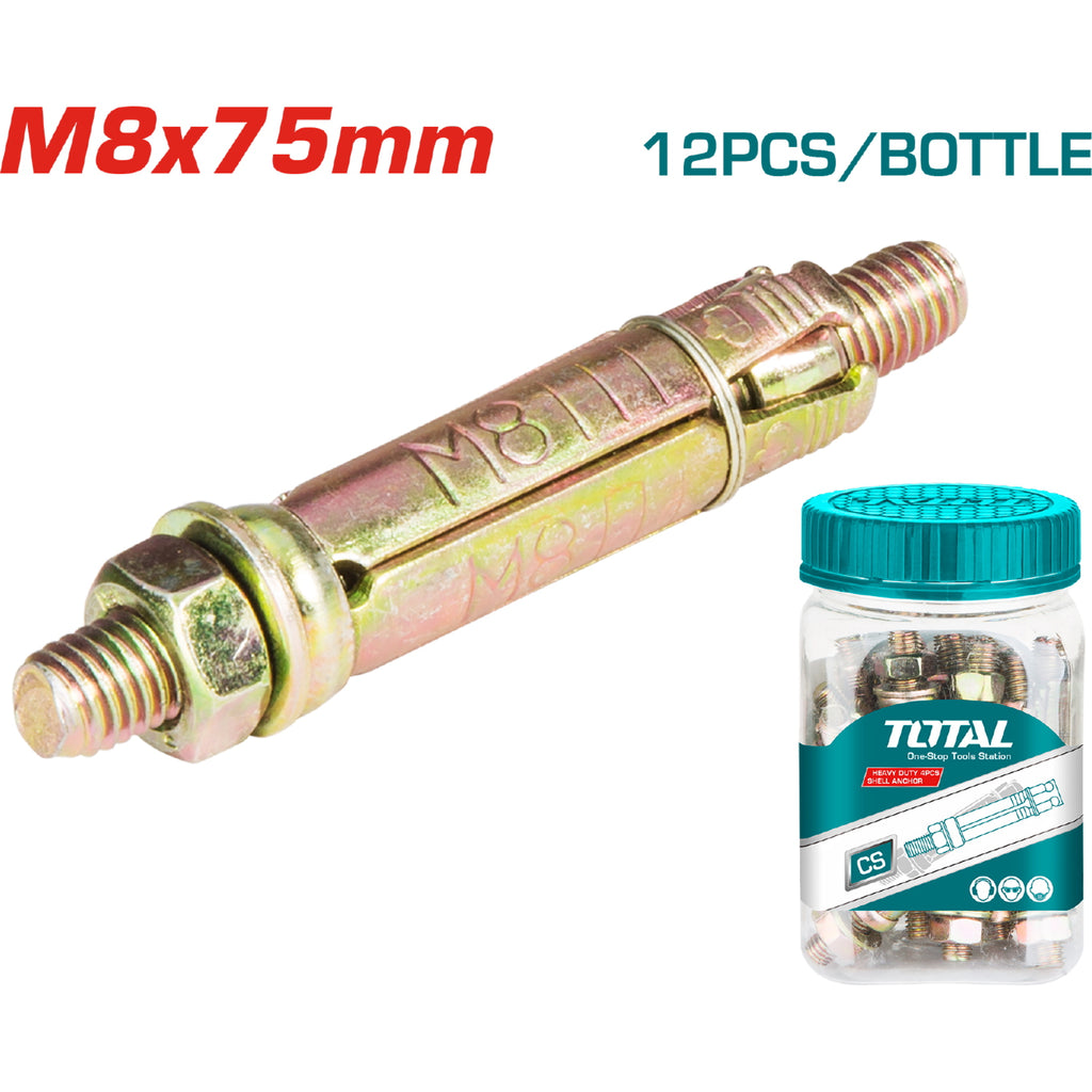 12/pza Taco galv de 4 pcs carcasa heavy duty M8x75. Diam. Externo 14 mm. Largo carcasa 50 mm.