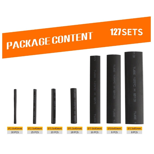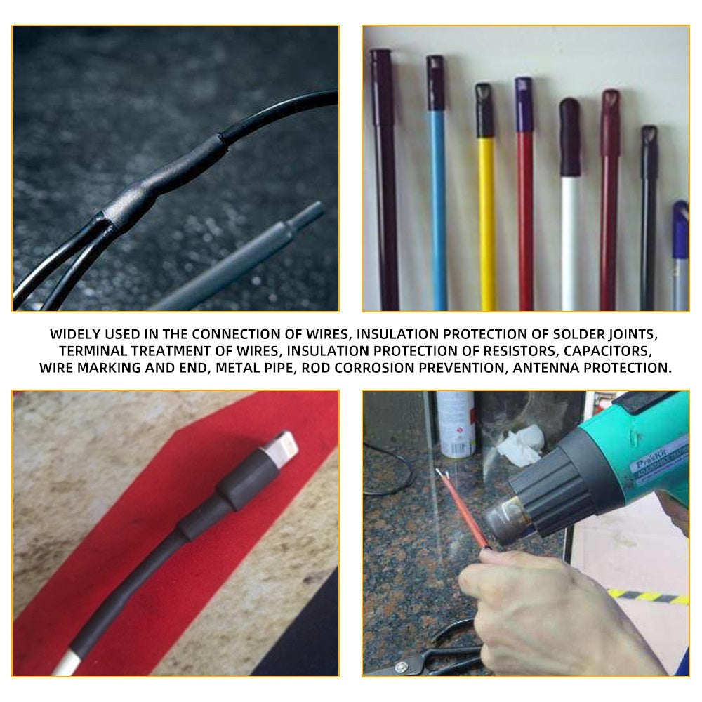 El surtido de tubos termoretráctiles se utiliza principalmente en conexiones de alambre para prevención de óxido y protección contra la corrosión de juntas de soldadura, protección y procesamiento de aislamiento de alambre externo, arnés de cableado y componentes electrónicos. También funciona bien para proteger los auriculares y los cables del cargador del teléfono.
