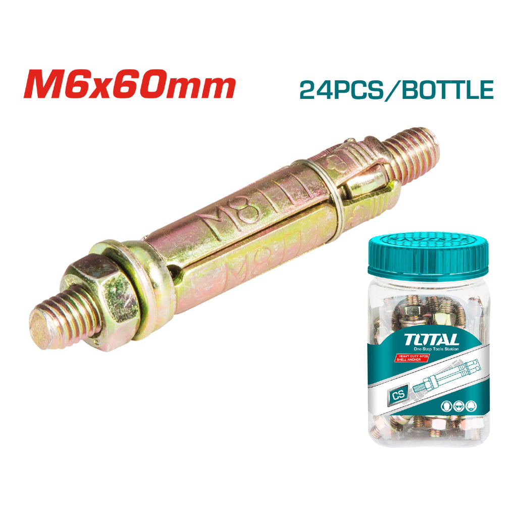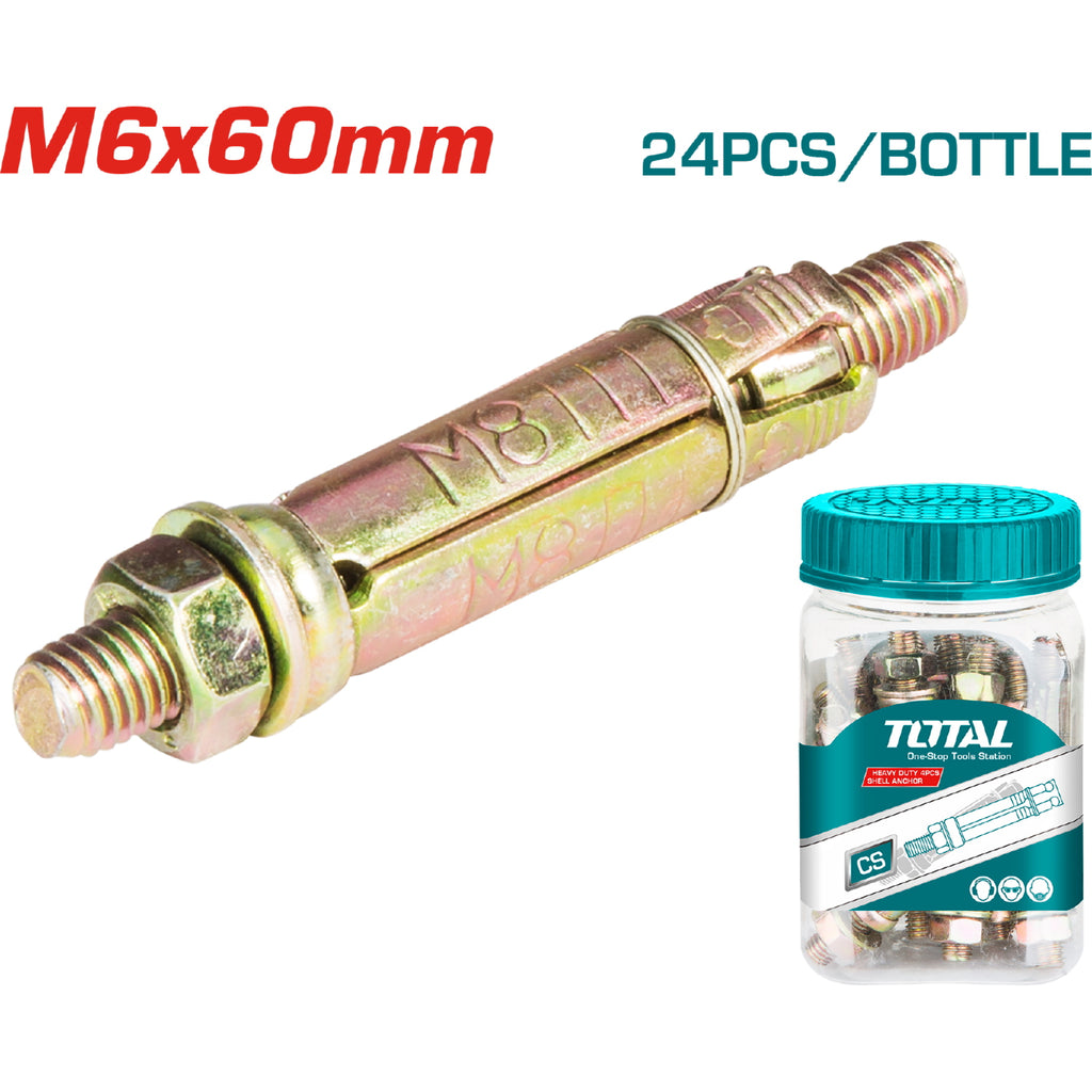 24/pza Taco galv de 4 pcs carcasa heavy duty M6x60. Diam. Externo 10 mm. Largo carcasa 40 mm.