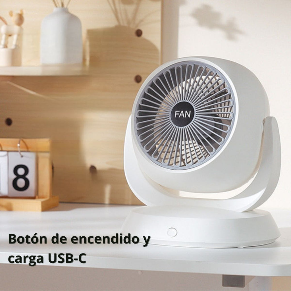 Mini Abanico De Escritorio Recargable Silencioso De 3600mAh. Ventilador Portátil Con Puerto De Carga USB-C. 19.8x9x19.6cm. Color Blanco.