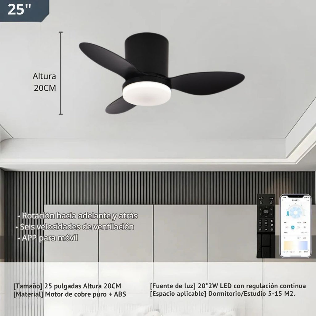 - Ventilador de techo moderno de 25 pulgadas en color negro, ideal para dormitorios, salas de estar, estudios y comedores
