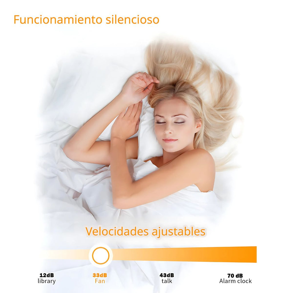 - Funcionamiento silencioso con velocidades ajustables para mayor confort.