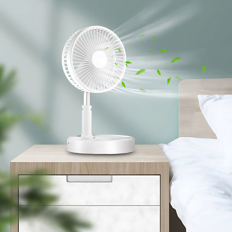 Abanico plegable portátil. Ventilador recargable de 4 velocidades. Color blanco.