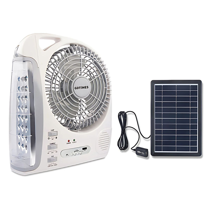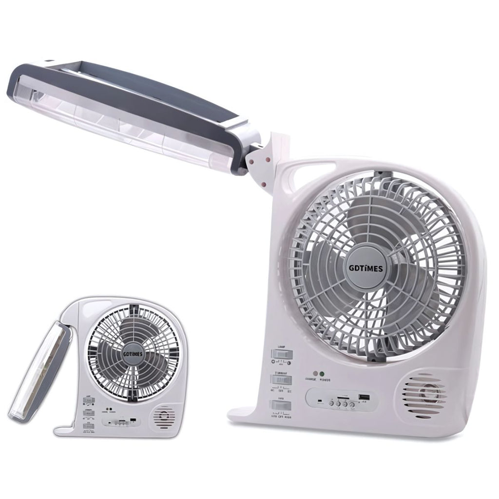 Abanico Solar Portátil 8''''. Ventilador Recargable Con Panel Solar. Con Luz LED y bocina integrada.