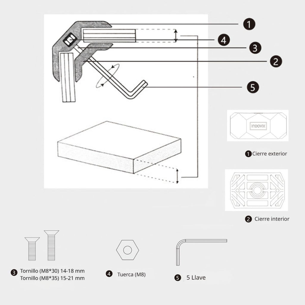 - Instalación rápida sin necesidad de perforaciones ni herramientas eléctricas.