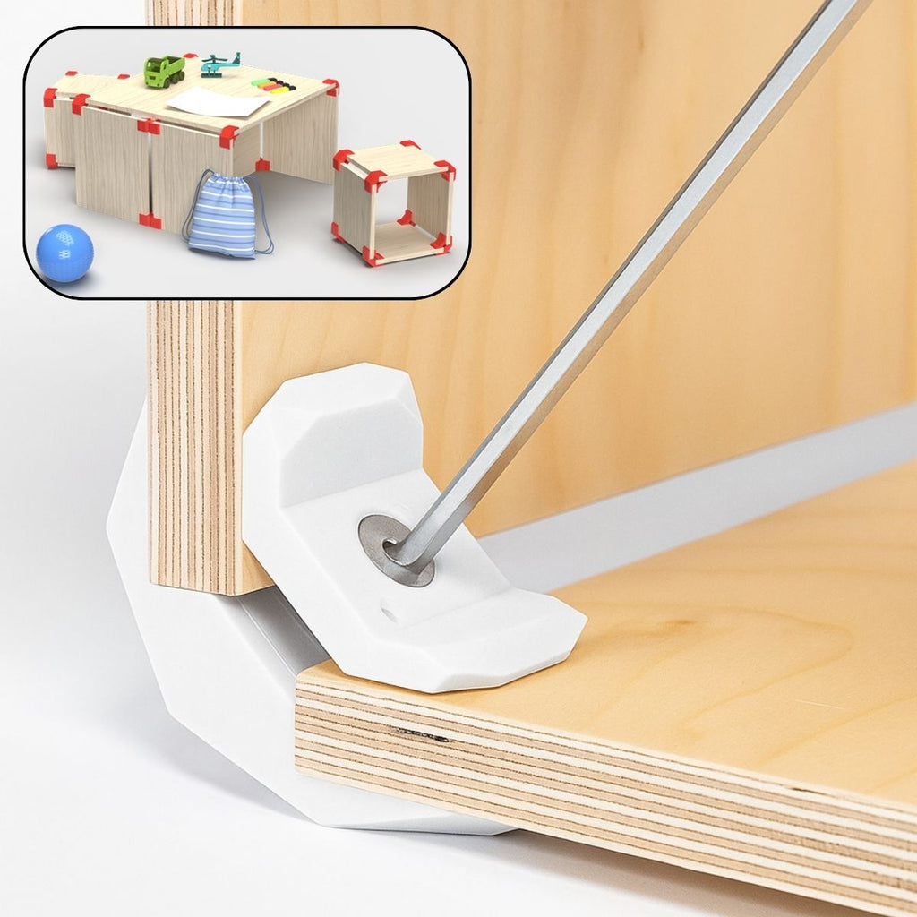 - Conector de esquina para madera, MDF y melamina, ideal para muebles, repisas y estructuras.