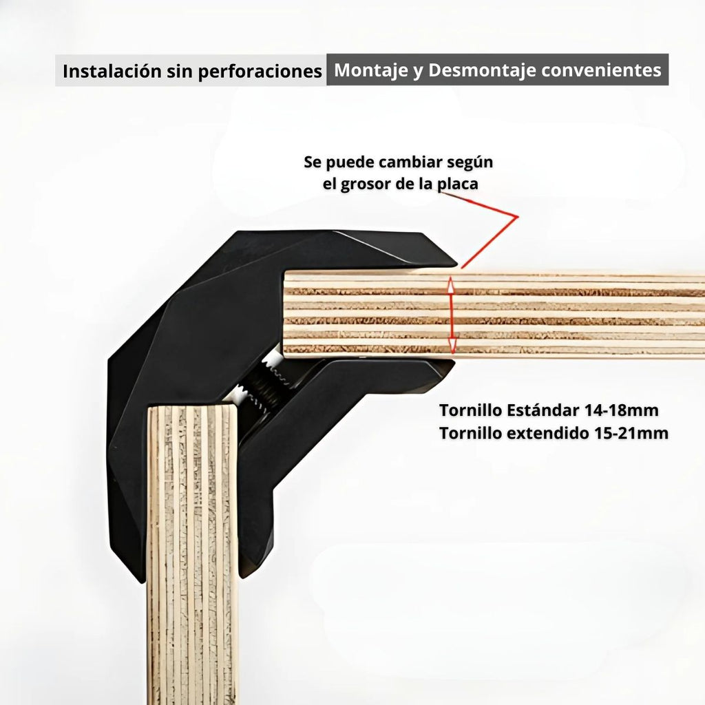 - Instalación rápida sin necesidad de perforaciones ni herramientas eléctricas.