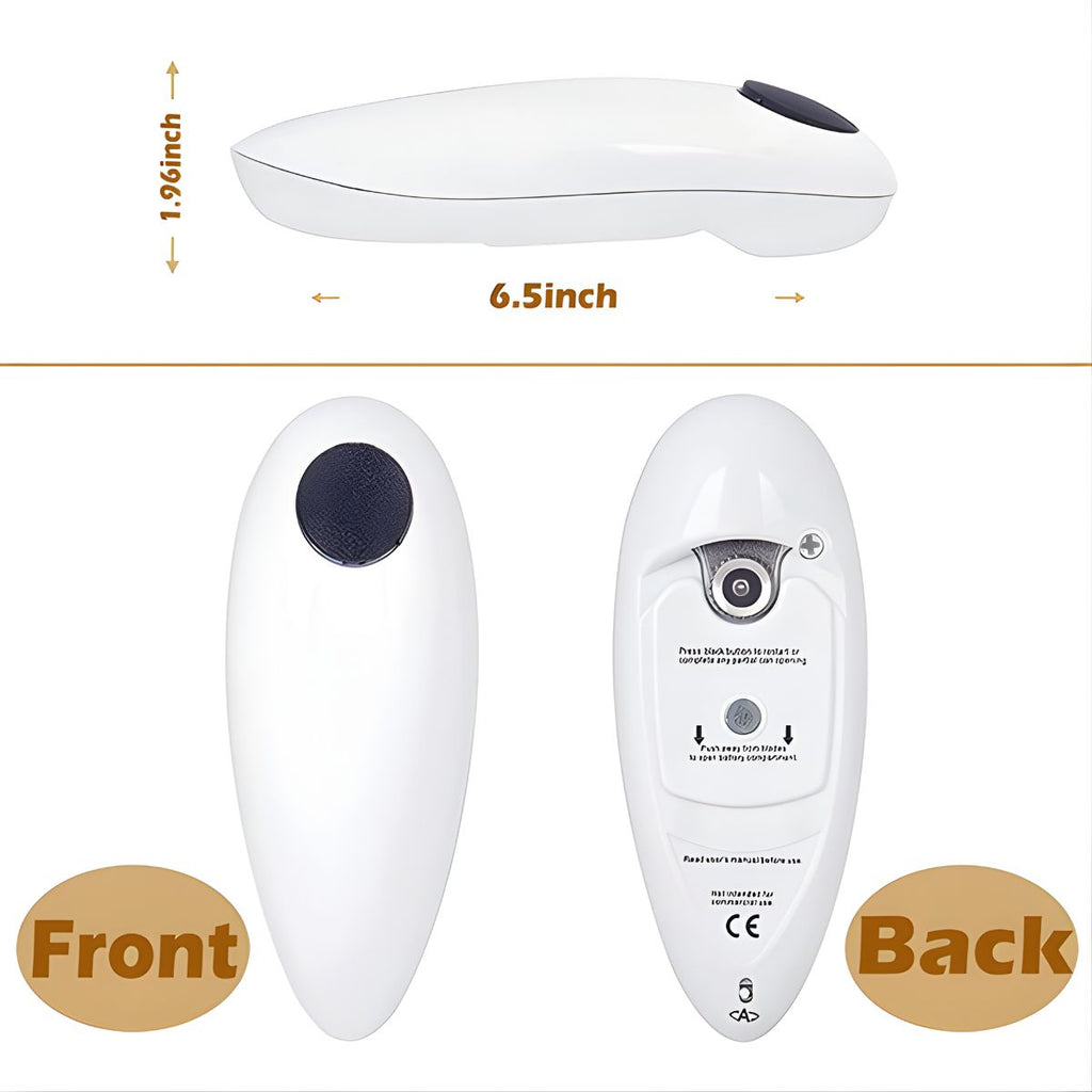 - Abrelatas eléctrico automático que abre latas con un solo botón, sin esfuerzo y sin contacto directo con la comida.