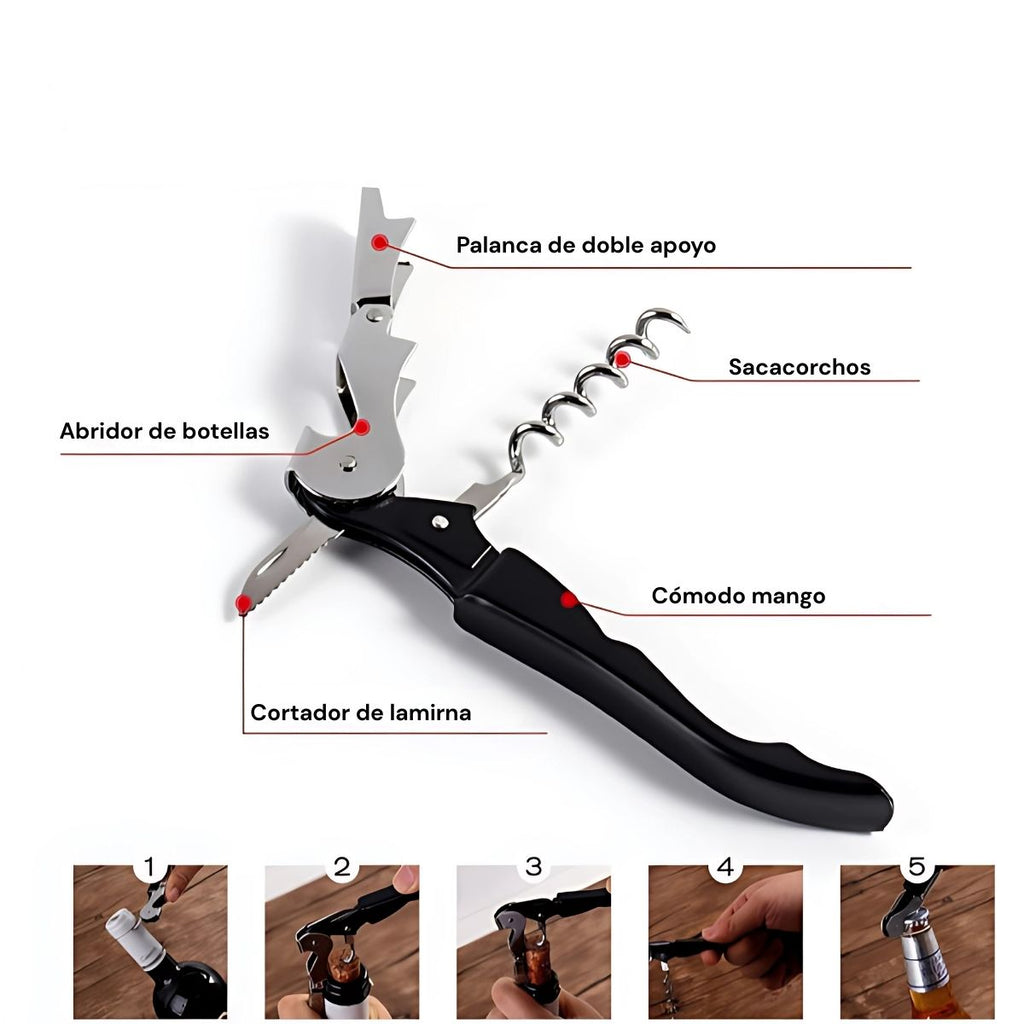- Herramienta profesional con sacacorchos de doble palanca, espiral robusta y mango ergonómico para descorchar botellas de vino con facilidad.