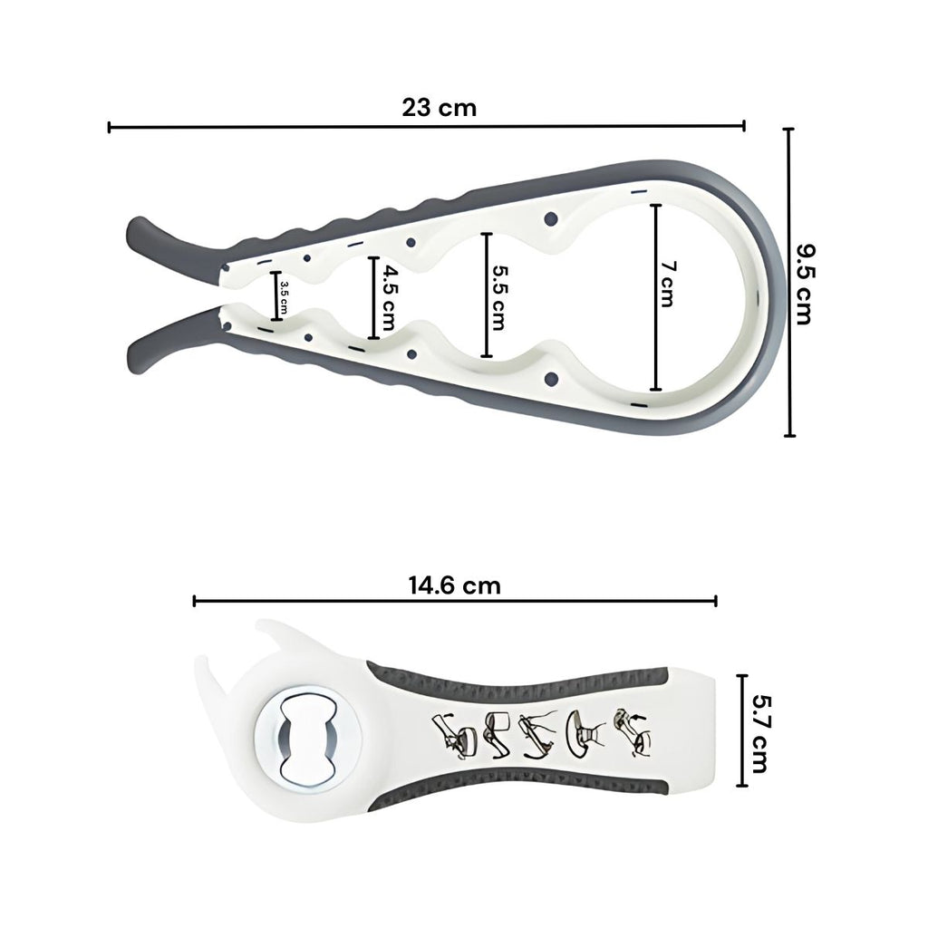 - Incluye abridor 4 en 1 de gran tamaño para frascos de diferentes diámetros, ideal para abrir tarros difíciles sin esfuerzo.