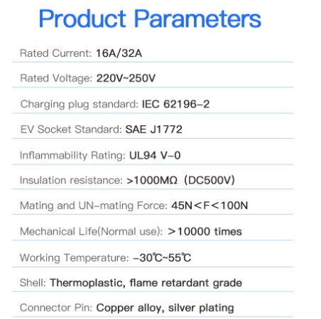 | *Nombre | Adaptador de enchufe carga J1772 tipo1 a carro puerto Tipo 2 estandar Europeo |