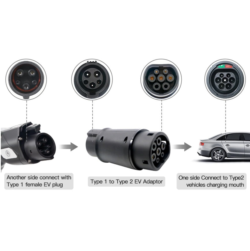 Adaptador de enchufe carga J1772 tipo1 a carro puerto Tipo 2 estandar Europeo