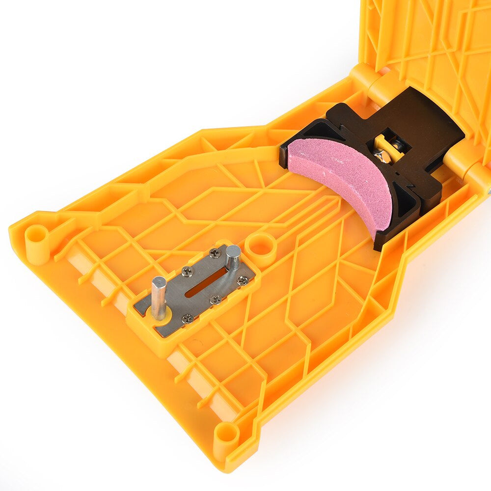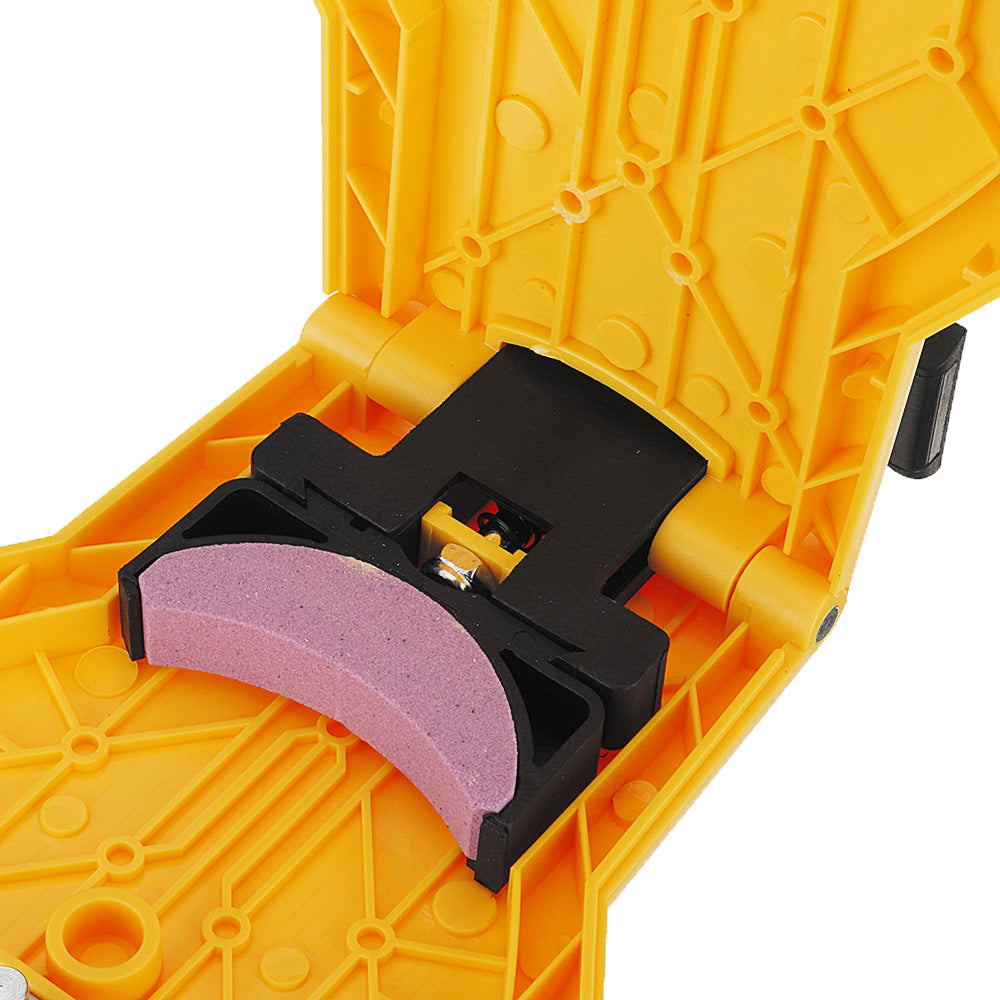 Seguridad y rapidez: el afilador de motosierra protege tus manos de daños. Tus manos no necesitan tocar la piedra de afilar, simplemente aprieta la sierra de cadena, la motosierra se puede afilar en segundos.