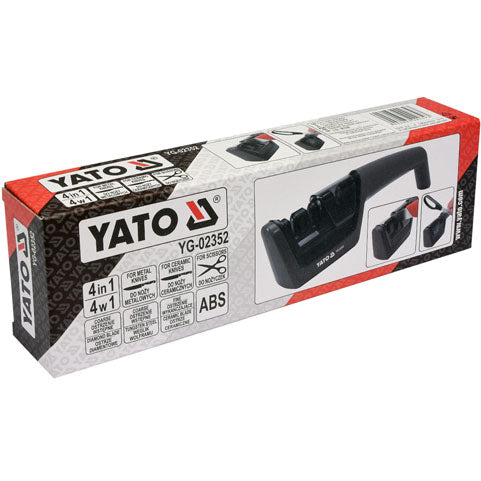 Afilador De Cuchillos 4 En 1. Amolador 4 En 1 Para Tijeras Y Cuchillos De Metal Y Ceramica. Tiene Tres Ranuras Para Afilar: Para Tijeras, Gruesa, Fina. Material De Los Discos (Cuchillas) Para Afilar: Ceramica, Acero De Tungsteno, Diamante. Cuerpo De Abs