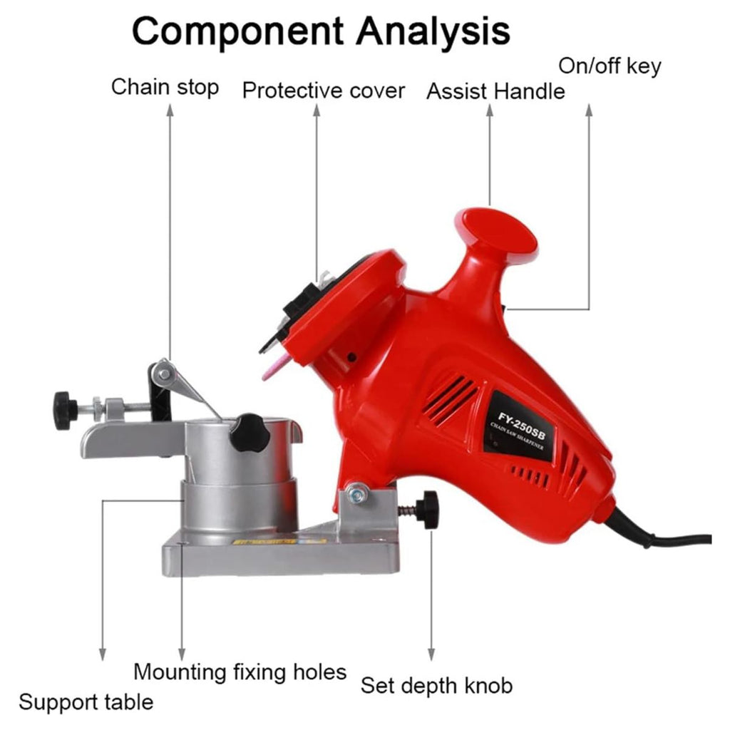 Afilador Eléctrico para Cadenas de Motosierra 110V. Incluye 2 Discos de Afilado.