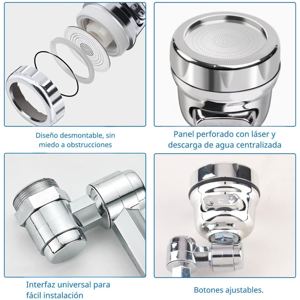 - Ahorro de agua con presión mejorada, ideal para cocina, baño o lavado.