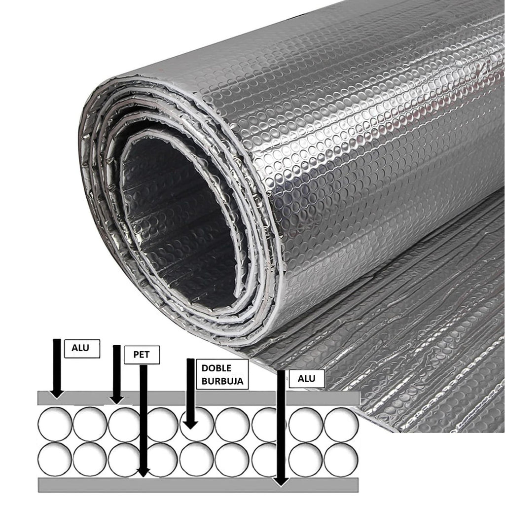 Aislante Térmico para Techos y Paredes – Doble Burbuja 2 Caras de Aluminio 97% Reflectividad – Rollo 4’x125’ (1.22x38.1m) 5-7mm – Ignífugo, Ahorra Energía y Reduce Calor