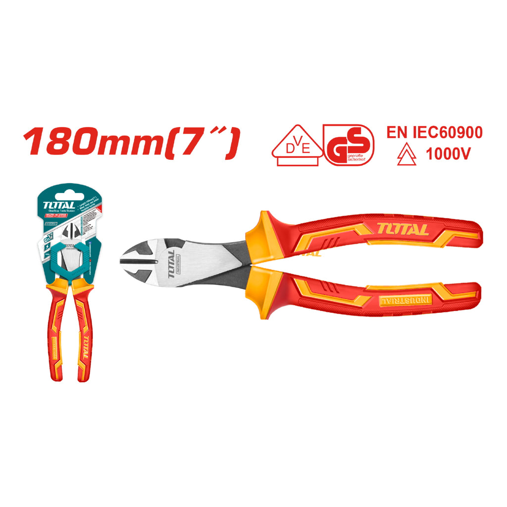 Alicate de Corte Diagonal de 7'' (180mm) de Mango aislado. Acabado Negro Pulido. Soporta 1000 V. Para Trabajo Pesado.