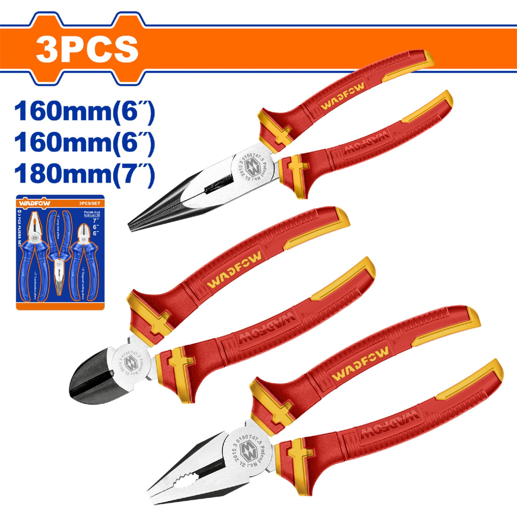 | *Nombre | Alicates Aislados Set de 3 piezas. Soporta 1,000 voltios. Mango aislado. |