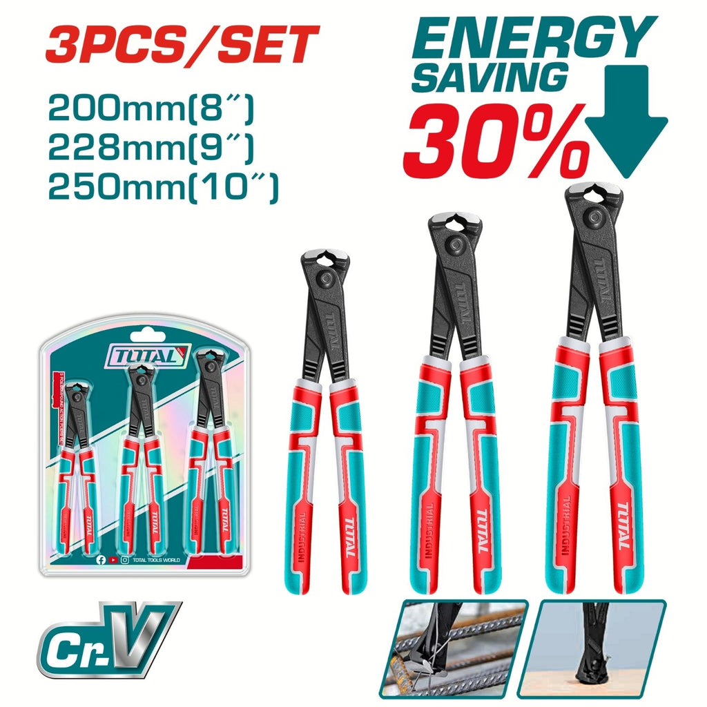 Alicates de Corte Final de alto apalancamiento. Set de 3 piezas.