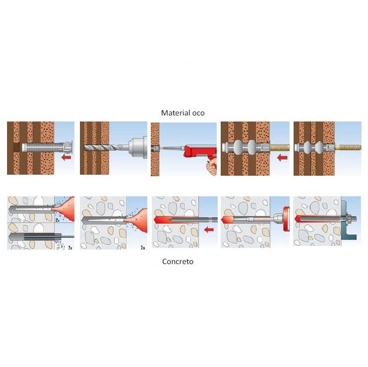 Anclaje de soportes de Plasmas o TV al concreto, barandas de escalera al concreto o ladrillo, fijación de varillas roscadas o espárragos al concreto, ganchos para colgar objetos pesados y todo tipo de soportes metálicos que necesitan fijarse al cemento.