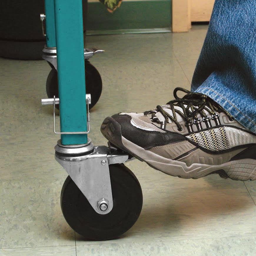 | Características | Apilable, se puede ajustar la altura de las patas para tener un área de trabajo nivelada. Posee 4 ruedas con freno para fijación. |