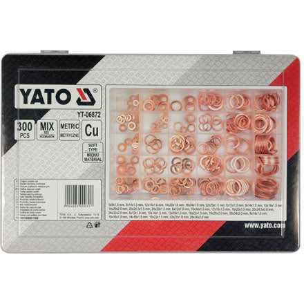 Yato 300 Piezas De Anillos Sellantes De Cobre Surtidos (Suaves). 5*9*1 Mm: 10 Piezas; 6*10*1 Mm: 10 Piezas; 6*12*1 Mm: 10 Piezas; 8*12*1 Mm: 10 Piezas; 8*14* 1 Mm: 10 Piezas; 8*14*1.5 Mm: 10 Piezas; 9*14*1 Mm: 10 Piezas; 10*14*1 Mm: 10 Piezas; 10*14* 1