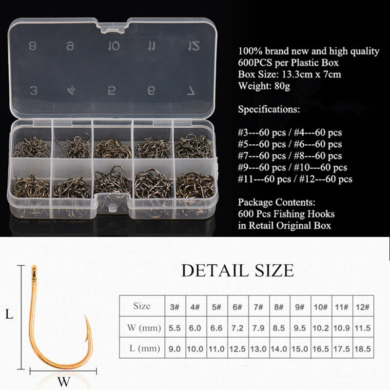 Anzuelos Set de 600 Pzs #3-#12 acero al carbono