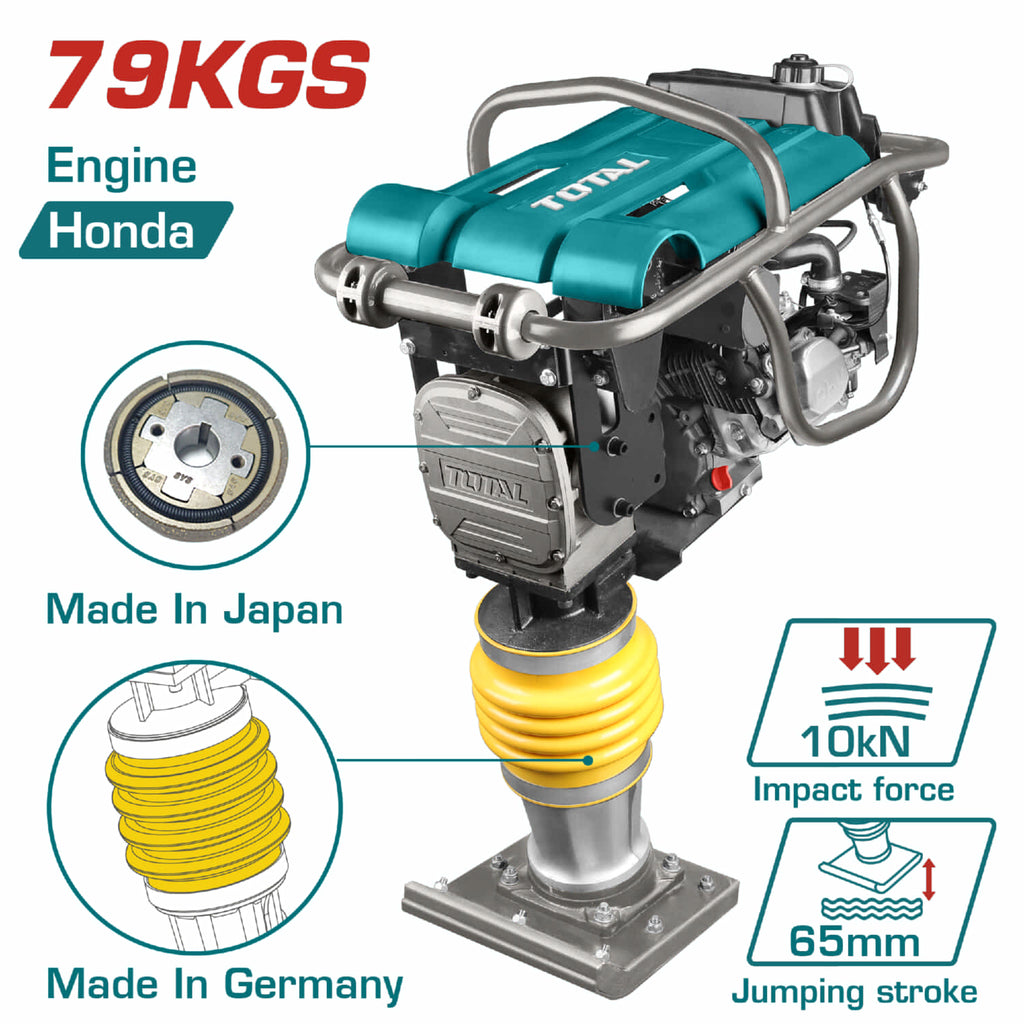 Sapo apisonadora compactadora, a gasolina. Motor HondaGX160 4.0Kw (5.5HP) 79 kg. Fuerza de impacto 10KN. Tanque de 2lt.