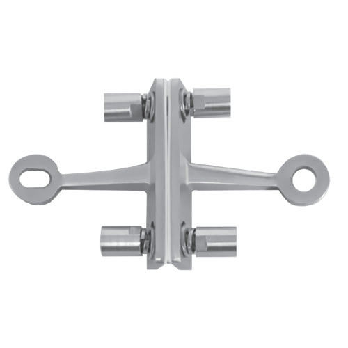 Araña de 2 vías con aleta. No incluye pernos. Brillante. Para construcción de fachadas de vidrio. Construidas a base de acero inoxidable 304 para vidrios de 8 a 26 mm de espesor. Compatible con los pernos para anclaje F/T32 , F/T02 y F/T01.