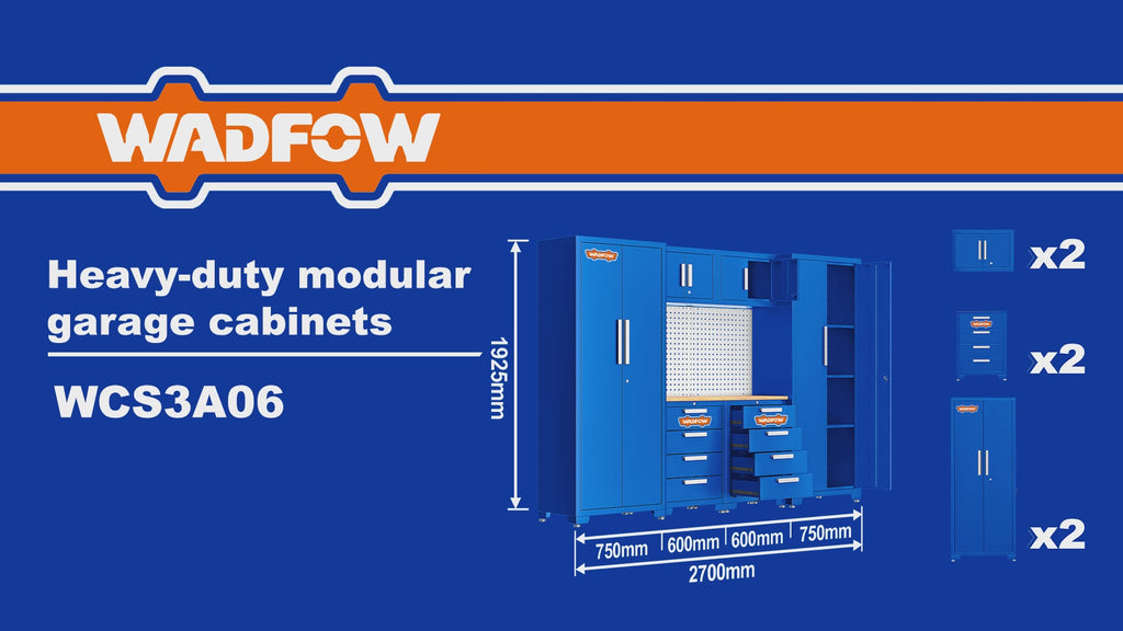 | Características | 2700x472x1925mm 6 piezas. Ideal en taller o bodega. Encimera de madera maciza. |
