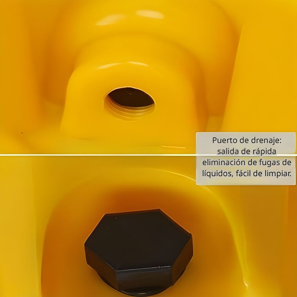 - Bandeja antiderrames fabricada en HDPE de alta resistencia, ideal para almacenamiento seguro de líquidos peligrosos y químicos.