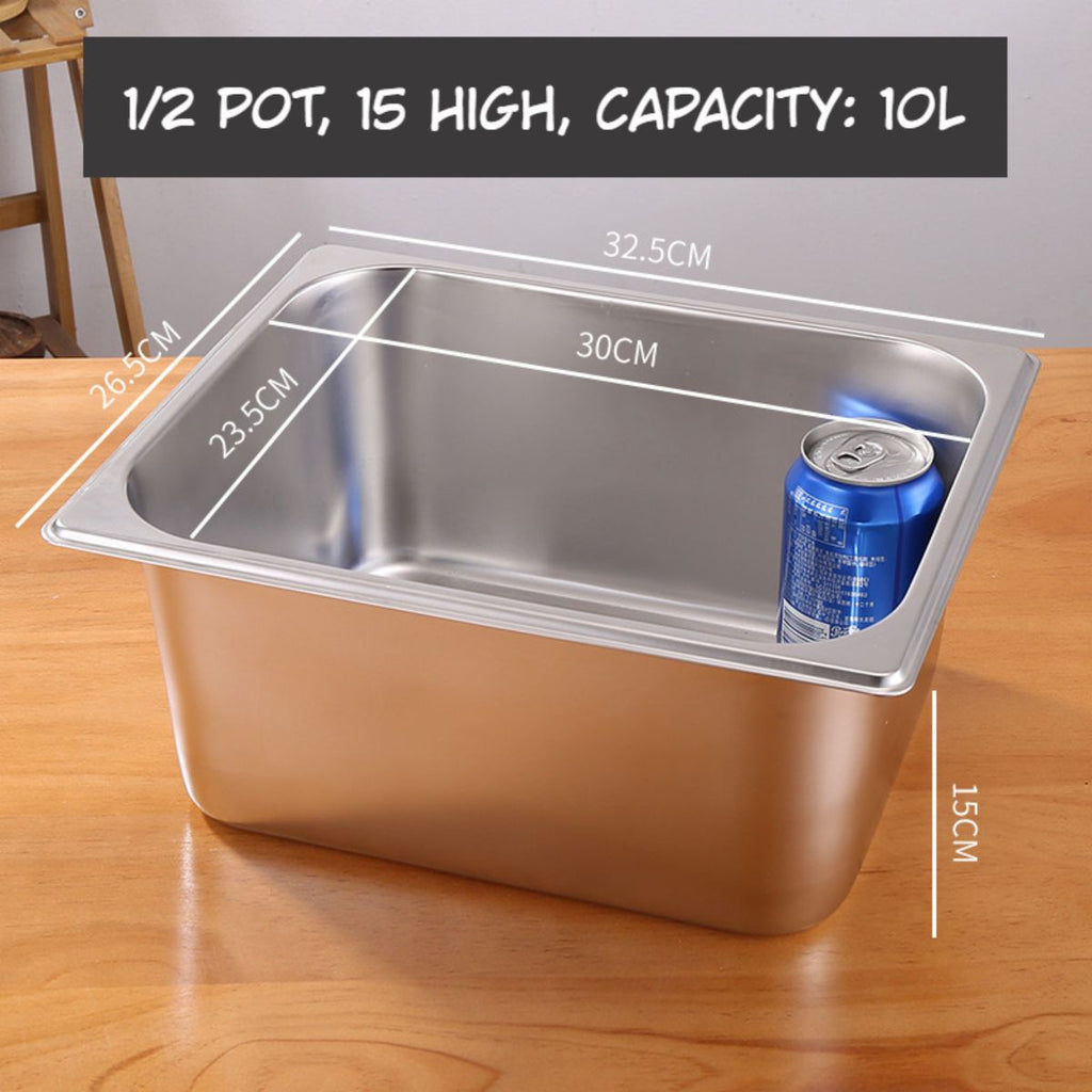 Bandejas de Acero Inoxidable para Buffet Hoteles Restaurantes Catering Gn 1/2. (No incluye Tapa) 10L.