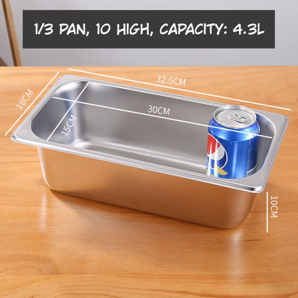 Bandejas de Acero Inoxidable para Buffet Hoteles Restaurantes Catering Gn 1/3. (No incluye Tapa) 4.3L.