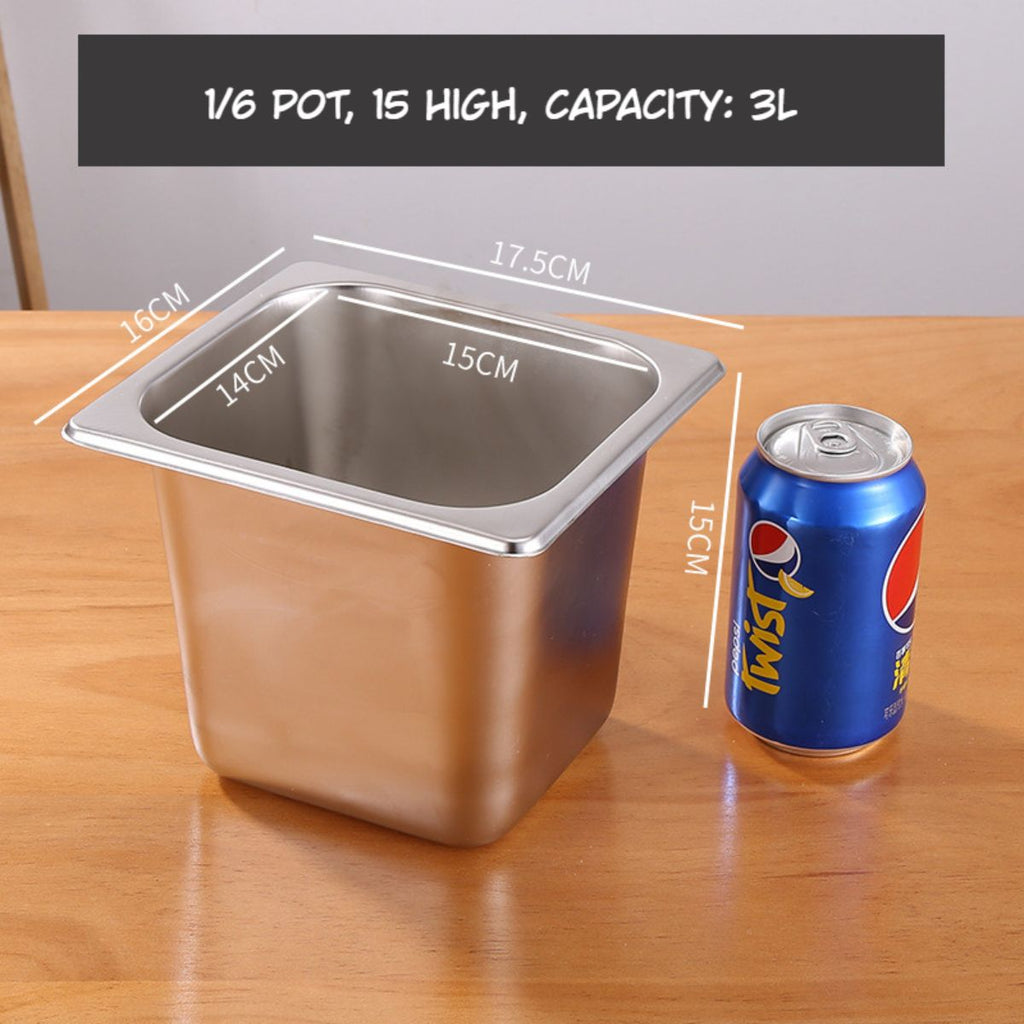 Bandejas de Acero Inoxidable para Buffet Hoteles Restaurantes Catering Gn 1/6. (No incluye Tapa) 3L.