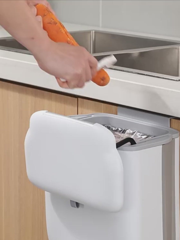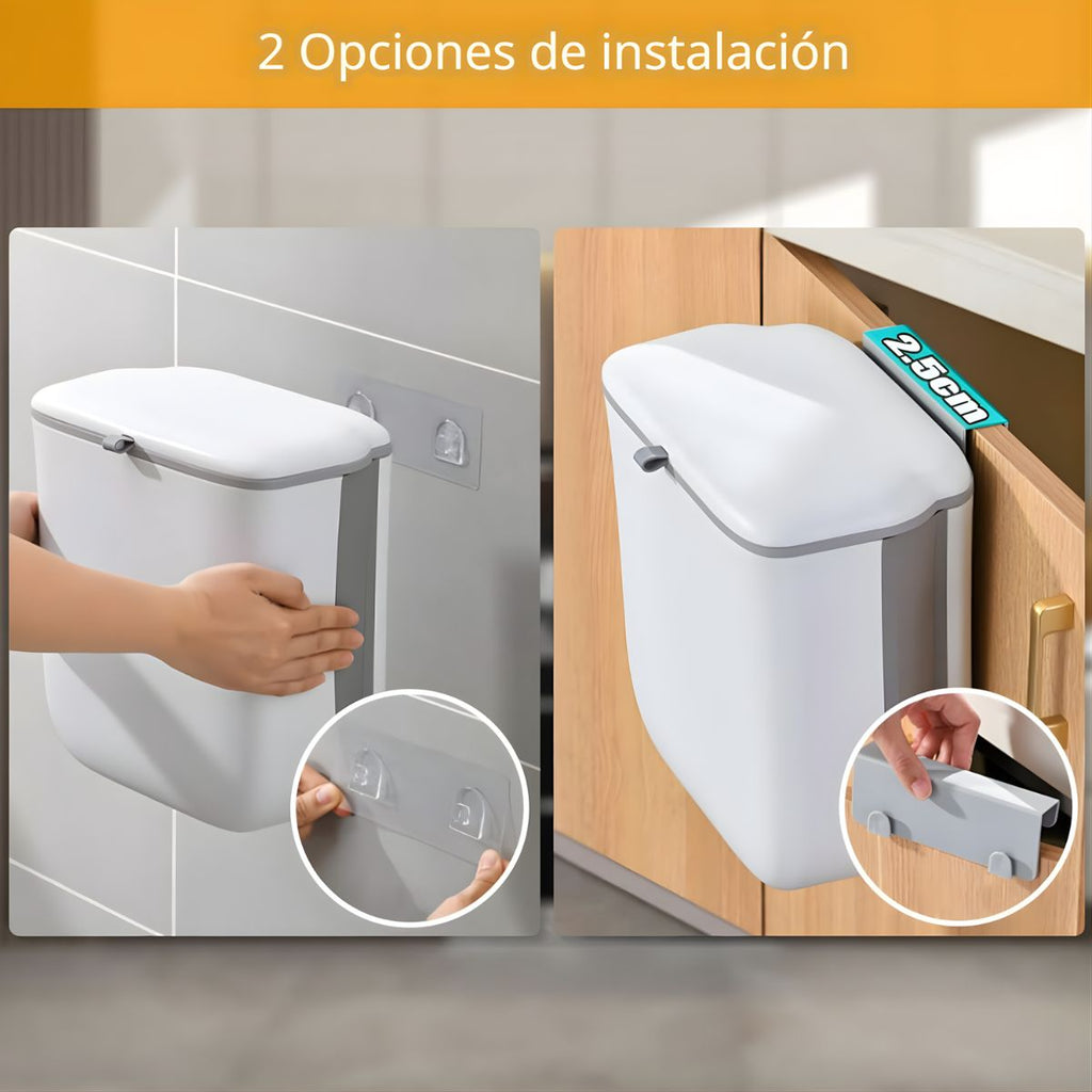 - Papelera plegable multifuncional de 9 litros, ideal para cocinas, baños y áreas de trabajo.