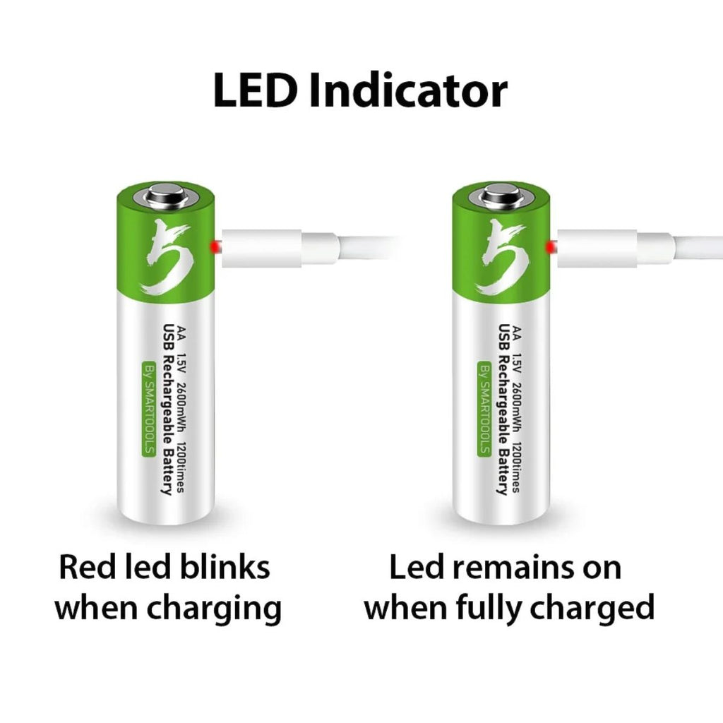 Baterías AA Recargables Con Carga USB-C, 1.5V 2600mWh. Con 1200 Ciclos De Vida. (Pack de 2 unidades)