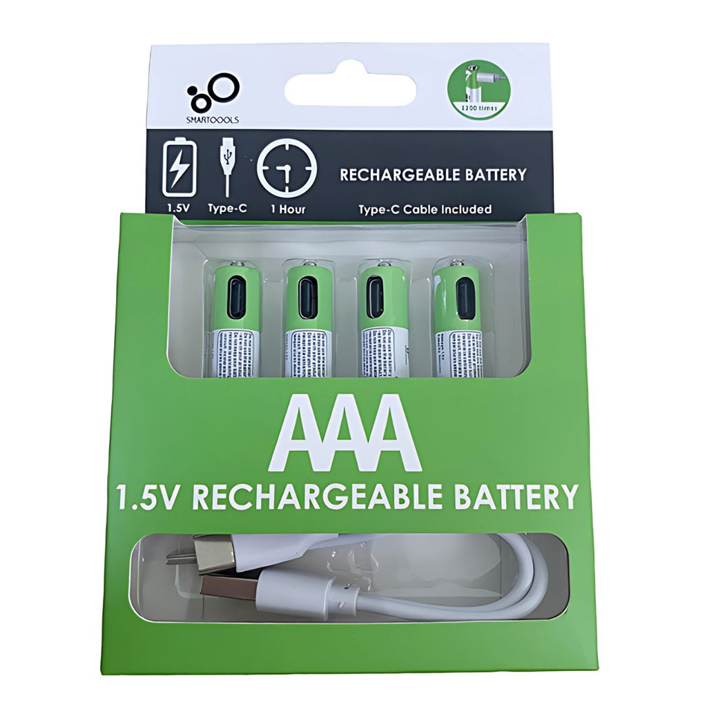 Baterías AAA Recargables Con Carga USB-C, 1.5V 750mWh. Con 1200 Ciclos De Vida. (Pack de 4 unidades)